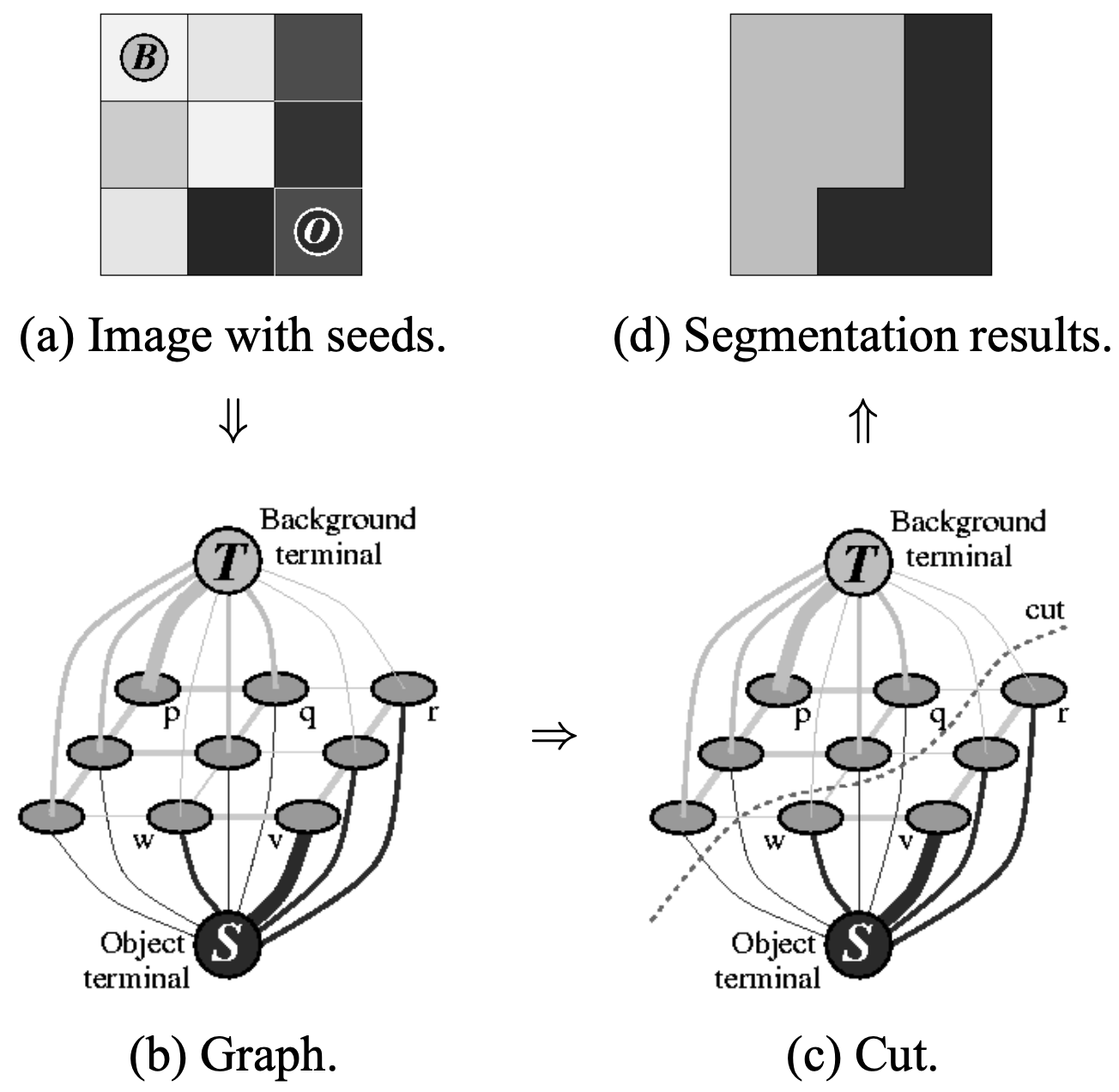 - GraphCut은 graph 상에서 loss를 최소화하는(=background 그룹과 object 그룹을 잘 구분짓는) 지점을 찾아서 cut 하는 알고리즘 (관련 논문, 참고하면 좋은 강의)
