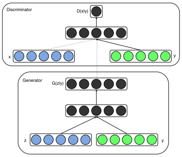 - 생성하고자 하는 label $y$를 조건으로 입력하는 모델. label $y$는 one-hot encoding 형태로 모델에 입력