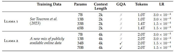 그 외에 Pre-Normalization, SwiGLU activation function과 RoPE를 사용한 것은 Llama 1과 동일합니다. 이 기술에 대한 설명은 지난 포스트에서 확인하실 수 있습니다.