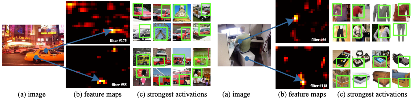 - convolutional layer는 입력 이미지 크기에 관계없이, 이미지 상에서 어느 영역이 가장 활성화되었는지 보여주는 feature map을 생성할 수 있음. (feature maps involve not only the strength of the responses, but also their spatial positions.)