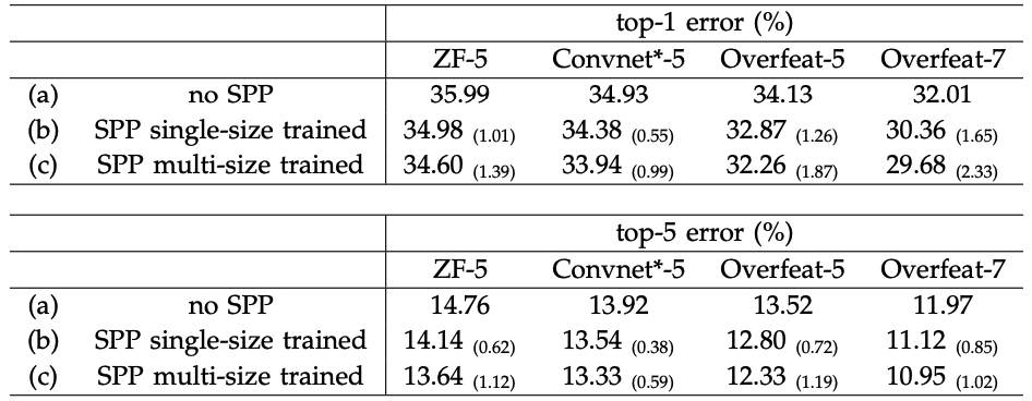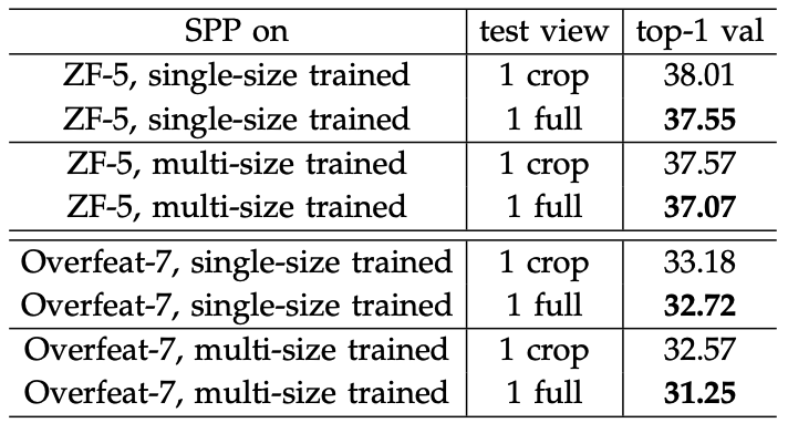 - (입력 이미지 크기의 유연성 덕분에) 가변적 크기의 이미지에서 추출된 feature를 pool할 수 있기 때문에 모델 성능 향상. (다양한 크기의 object로부터 feature를 추출하기 때문에) 학습할 때부터 가변적 크기의 입력 이미지를 사용하기 때문에, scale-invariance를 향상시키고 over-fitting을 완화시킴